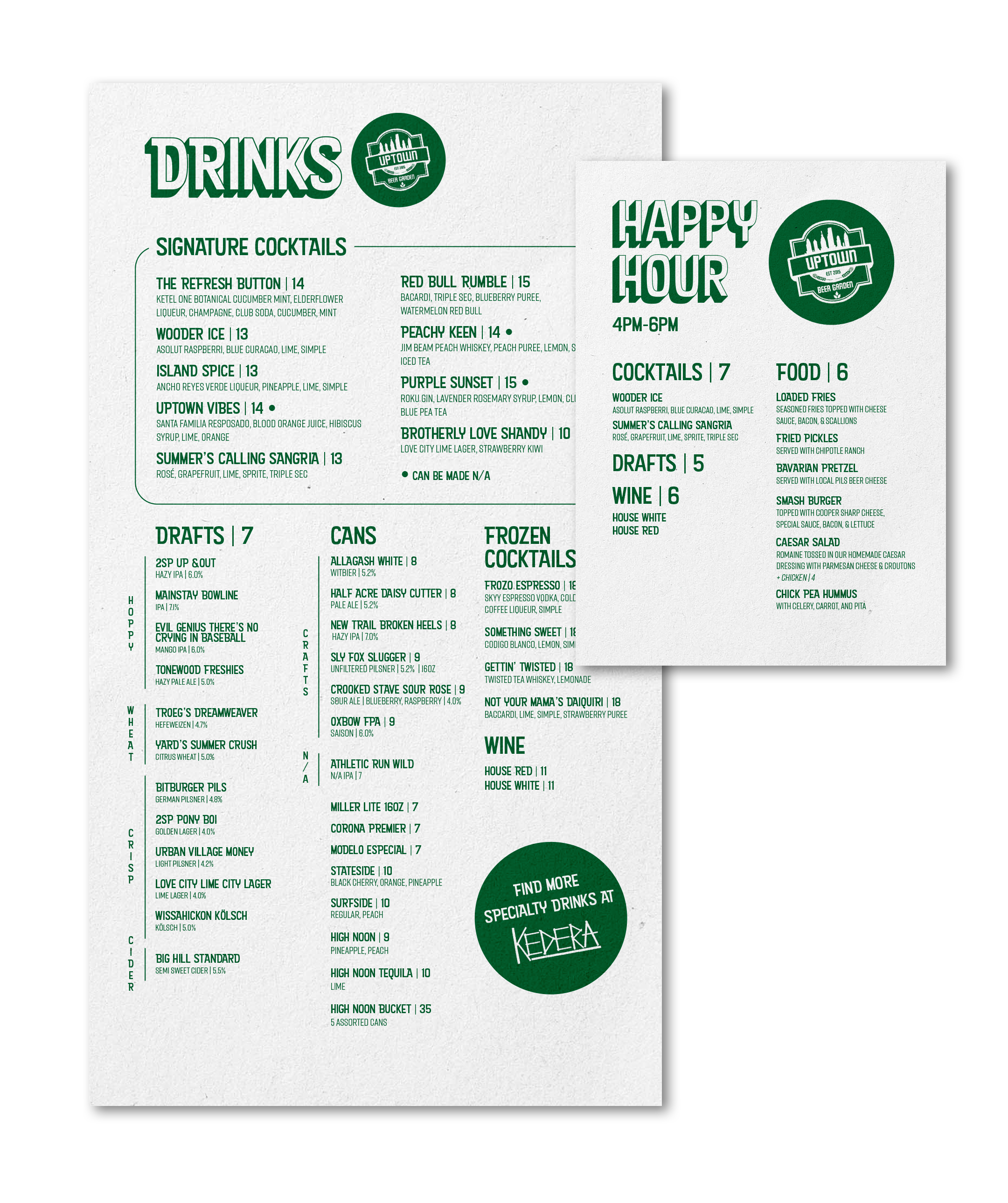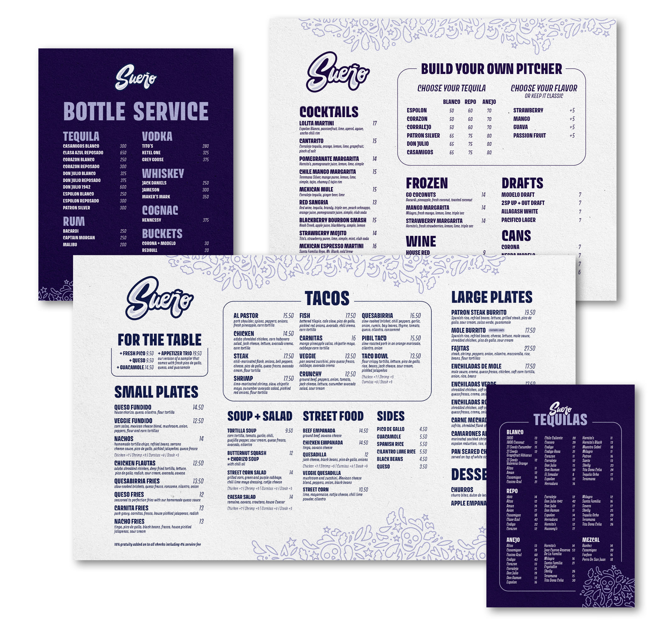 While working for Craft Concepts Group, I had the opportunity to redesign and refresh many of their existing menus, including Sueño, Tradesman’s, Mona, The Elephant, Tinsel, Uptown Beer Garden, Memories in Margate, and many more. Some locations also changed for the holiday seasons, allowing me to create new logos and menus for Christmas and Halloween pop-ups.